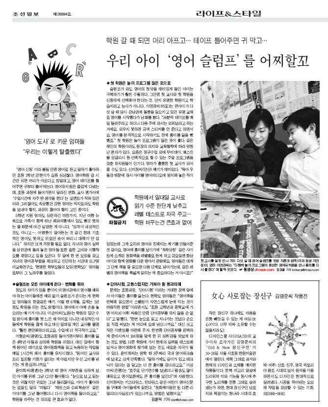 10월 10일(수) 조선일보 본지 25면에 전국 SLP 대표 학부모들의 모임 [SLP 현학모] 관련 기사가 게재되었습니다. 자녀 영어교육에 성공한 SLP 현학모 학부모들의 슬럼프와 위기 극복 노하우가 기사화 된 것으로, 현재 SLP에 자녀를 보내고 있는 현학모 학부모들의 사례가 다루어져 SLP 교육의 우수성을 간접적으로 알릴 수 있는 좋은 계기가 되었습니다.