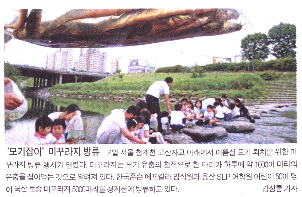 <중앙일보> 모기잡이 미꾸라지 방류 행사