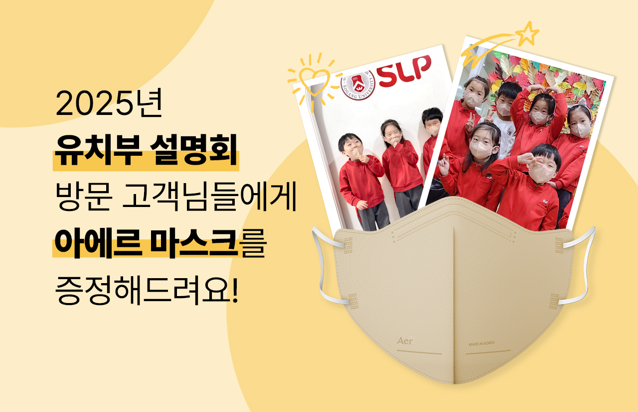 이번 설명회 개최를 맞아 서강SLP는 특별 선물 증정 이벤트도 마련했다. 라이프케어 솔루션 디자인 브랜드 ‘아에르’와의 콜라보를 통해 설명회에 참석하거나 방문 상담을 받는 고객 선착순 1만명에게 ‘아에르 KF94 어드밴스드 키즈 마스크’를 선물로 증정한다.