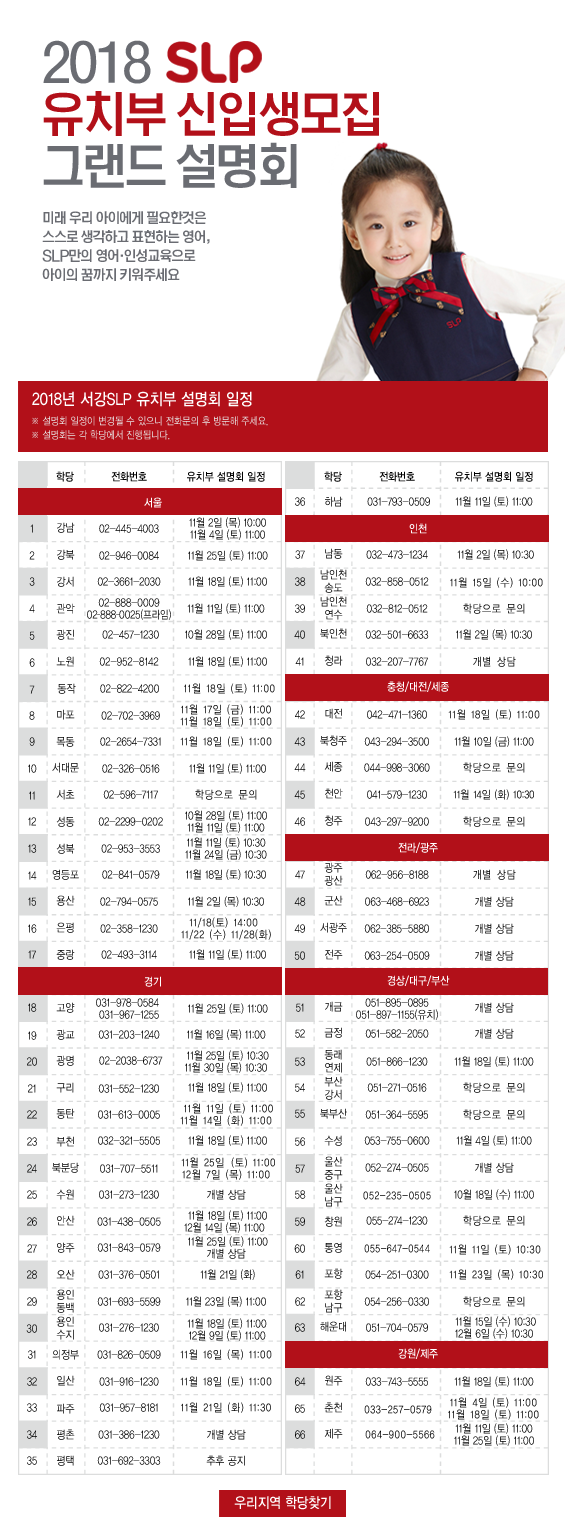 서강SLP 유치부 입학 설명회 리뷰를 남겨주세요.