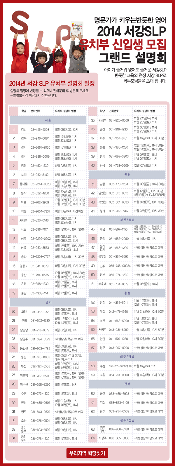 서강SLP, 2014 유치부 신입생 모집 그랜드 설명회 !