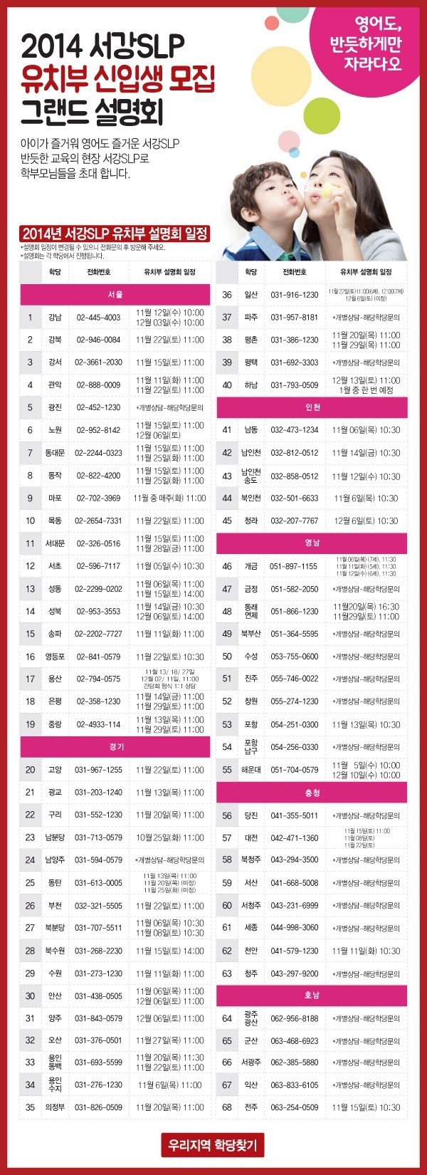 서강SLP, 2015 신입생 유치부 설명회 일정 안내 !
